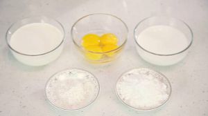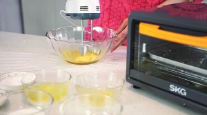 把牛奶、奶油、糖粉、低筋面粉、蛋黄倒进容器搅拌