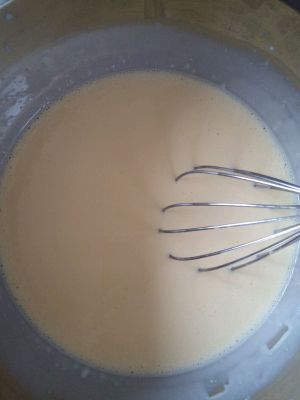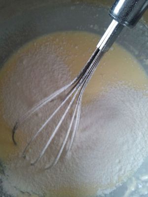 将所写的材料按比例在盆子里混合搅拌用手工和机器搅拌都行,拌完有沫要用筛子弄干净!!糖要很棉的白糖哦!如果不够棉在还没有加蛋黄时要小加热一下,然后让它融化!