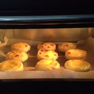 烤得过程中上下两个盘互换一下,烤到快好的时候关火闷一会儿,这样塔皮会更酥脆。