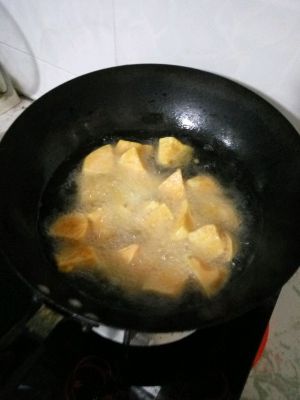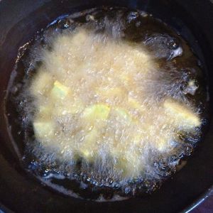 地瓜块放入油锅中