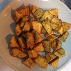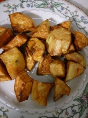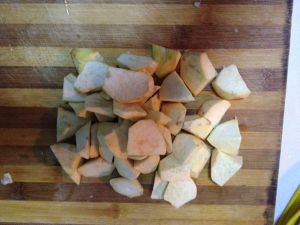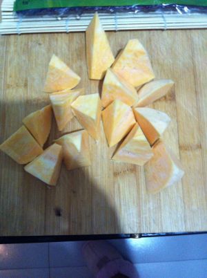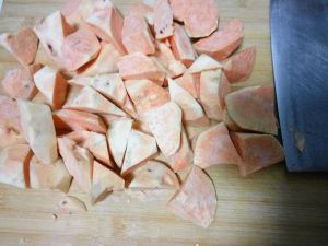 地瓜切滚刀块。