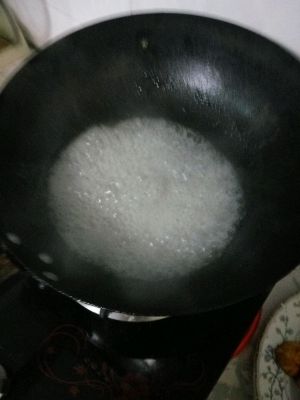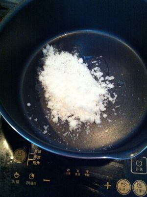 锅里放一小勺油,不要多,开始炒糖