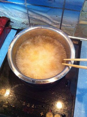 上锅炸火别太大,别糊了,直到捞上来有些硬的感觉,哗哗的声音。
