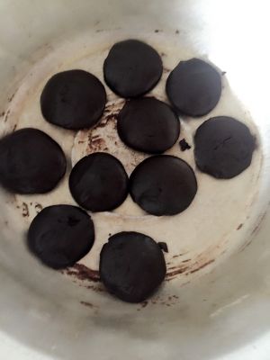 取出15g面团,在手中揉成圆形,放入烤盘上压扁,依次把所有面团都放在烤盘上,烤的过程中面团会受热膨胀,一定要留出适当的距离。