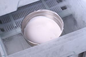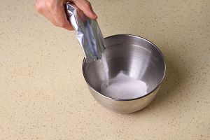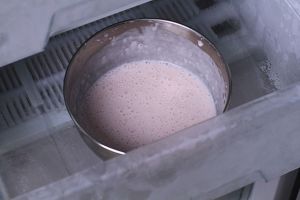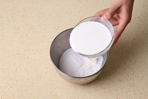 牛奶倒入有冰淇淋粉的打蛋盆中