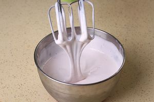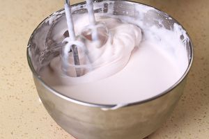 我是用剩余的奶油,倒出来整好220g,加入40g 糖,喜欢甜的可以加多点糖进去。打蛋器打到不会流动的状态即可。