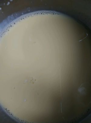 搅拌均匀,这时候的蛋挞液会有不少的泡沫