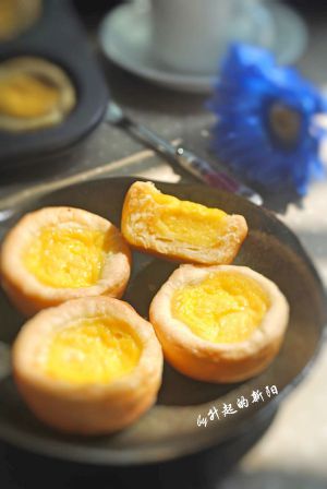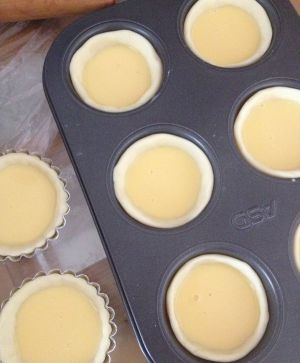 烤箱200℃预热 取出烤盘放入蛋挞皮