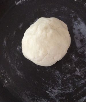 将低筋面粉、高筋面粉、盐、糖和20g软化的黄油混合,水慢慢加入用手揉成团,醒发20分钟。
