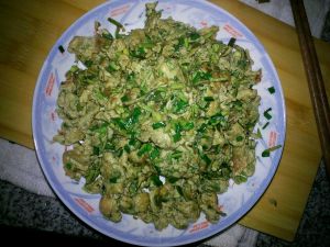 起油锅(比平常量多点,蛋很吸油),放入香椿煸炒几下,倒入打好的鸭蛋翻炒至鸭蛋熟即可起锅。香气扑鼻,不忍停箸。