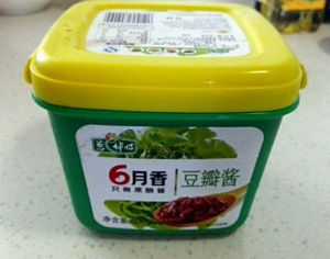 炸过茄子的油全部倒出,将茄子放入锅中,茄子本身很多油,不用放油了,放入一勺豆瓣,豆瓣很咸,不要放盐了,其他调料都不需要。