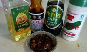料酒,酱油,醋,耗油,糖,盐,水 。按照1:1:1:2:2:2:5的比例加入,盖锅焖烧,15分钟后,小火收汁,哈哈,有人说大火收汁,我就小火~