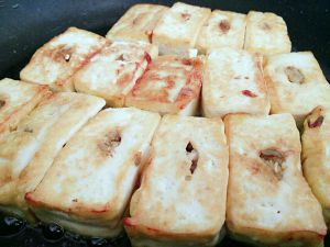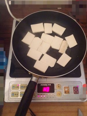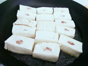 油入锅加热至五分热,加入嫩豆腐每面煎两分钟。