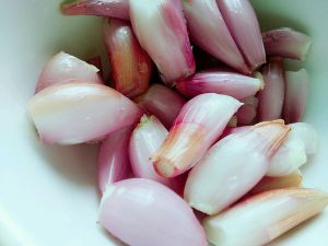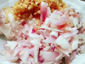 蒜,葱切碎,锅中加油炒香蒜粒。