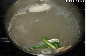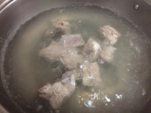 锅里加水,倒入洗干净的排骨开始煮。煮半个小时加鸡精盐