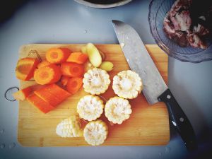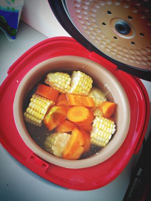 由于用的是电饭煲,定的慢炖2小时,所以胡萝卜切的块要稍微大一些