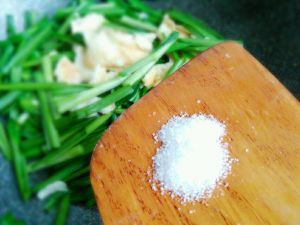 起锅放油,油六分热,倒入鸡蛋液,翻炒九分熟出锅,倒入韭菜段,翻炒半分钟,倒入鸡蛋,盐,耗油。出锅!!!