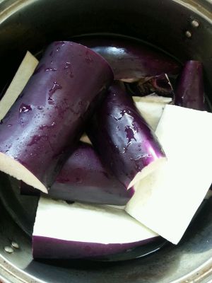 茄子去皮蒸锅蒸10分钟(根据茄子大小来决定)蒸好后用刀划几刀