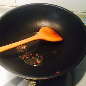 锅中放入适量油,花椒和八角放锅中,与油一同加热,切记 一定要是花椒与油一同加热,而不是油热放花椒八角~这样才能炸出花椒的香味哦
