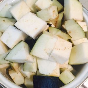 茄子不用去皮 切块 放容器里