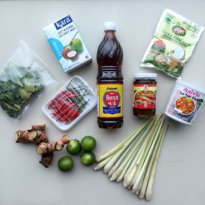 1.香茅切段、青柠叶、辣椒、南姜切片、冬阴功酱2勺、虾酱1勺、番茄。一起放入清水煮,煮开后调成小火闷5分钟 2.草菇切片放汤里,大火煮开,放入洗好的虾虾们 3.煮到虾蜷起来,加入椰浆适量 4.关火,尝尝,不够咸再加点鱼露。(整个过程不要加盐,鱼露有咸味又提鲜,不要放太多) 5.起锅,撒点香菜,萨瓦底卡,好呐