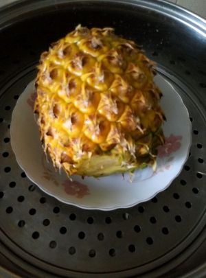 放在菠萝皮里,少放点水,蒸时菠萝出水