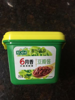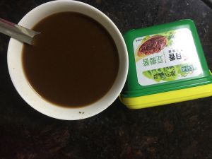 在炸茄子的时候就准备酱汁,一勺豆瓣酱,一点白糖提味,加入半碗水调均匀,要是有高汤就最好了。