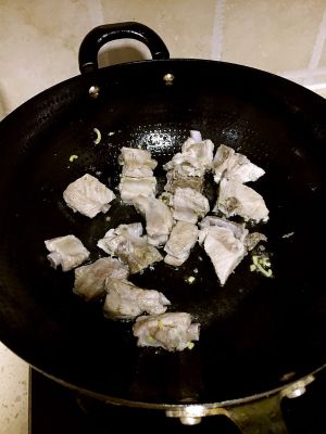 经过爆炒后,看小排上有轻微糖焦就可以稍微放点老抽跟少许盐。