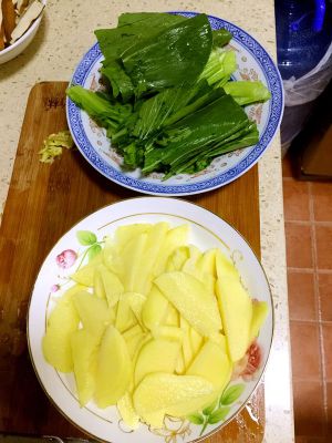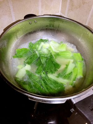 把汤烧热把刚刚准备的小白菜,土豆都倒进去,根据口味放适当盐。