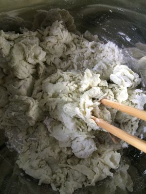面粉分成两份,一份加水(一点点加不要过多)搅成絮状