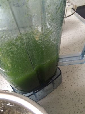 黄瓜用榨汁机打成汁(其实用其它有颜色的蔬菜也可以~)