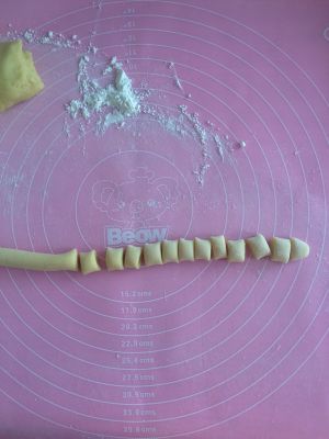 取下一块面团,揉成长条状,切成4g大小左右每个