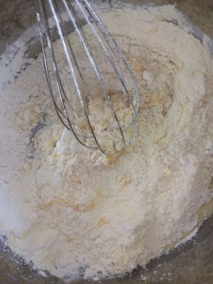 将所有粉类过筛后加入全蛋液中