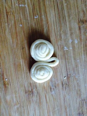 取40g白色面团挤压排气后揉搓成6厘米高的锥型