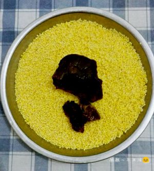 小米清洗干净后泡2个小时后,加过面水,放入适量的黑糖,上锅蒸30分钟。