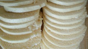 把其中5个小剂子按扁,擀成厚约0.3CM,直径10CM的圆片,圆片的边最好擀的薄点