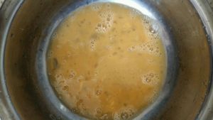1.鸡蛋两个和盐打散搅匀。 2.根据个人口味,也可以加点牛奶和糖。