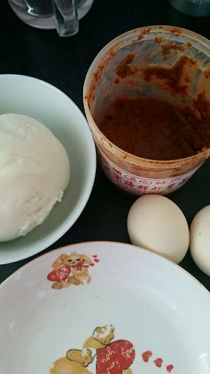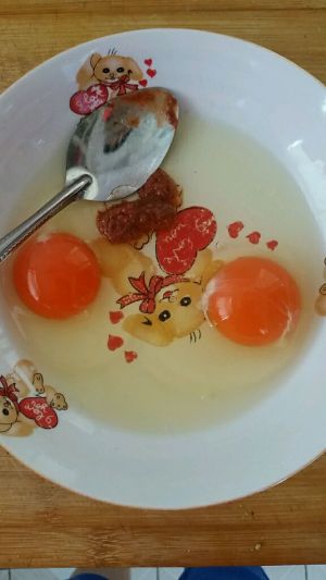 鸡蛋虾酱放盘里打匀