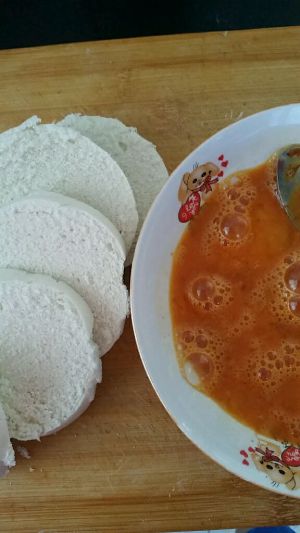 馒头切片 裹匀 放油锅煎至金黄