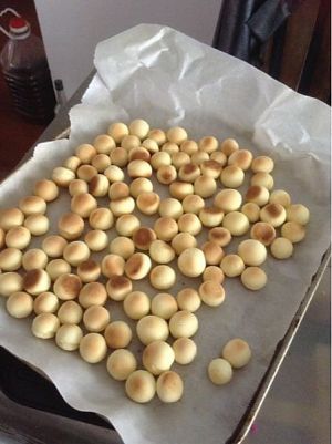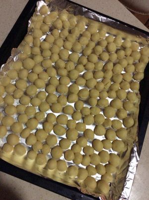 揉成大小相同的小圆球,放进烤盘。