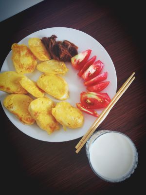 昨晚食堂打的小馒头2个,鸡蛋一只(话说除了炸馒头片,还有什么其他方法能把凉馒头做的如此好吃吗?答:没有)