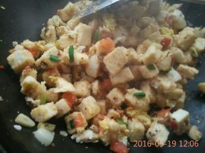 炒至馍块微干,入盘即可!