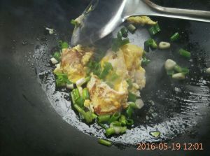 磕入鸡蛋,炒至定型!