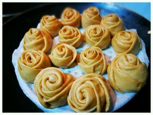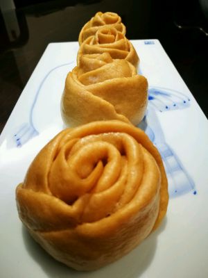 把做好的玫瑰花放置蒸笼上再次醒面至玫瑰花馒头膨胀,冷水入锅大火20分钟后熄火,不要着急开盖,让玫瑰花馒头在锅里焖5分钟后开盖。
