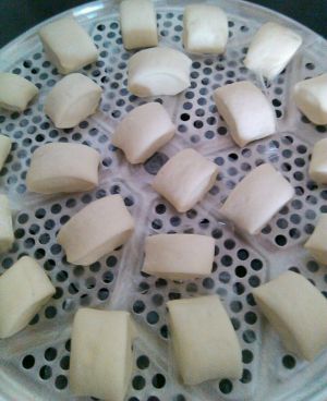 所有造型都要放半小时让它二次发酵后再蒸哦!来看看玫瑰花上锅的样子哦!最好冷水湿布下锅哈!
