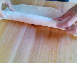 然后卷起来,两端捏住,用手弄成相同的粗细。