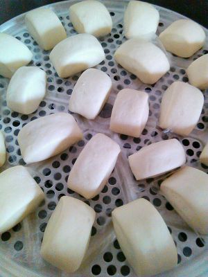 醒发好的馒头 (有没有大一点)就可以蒸了 水开后开大火下锅蒸15分钟 蒸好的馒头不能马上揭盖 再闷上10分钟 这样馒头才不会皱疤疤的