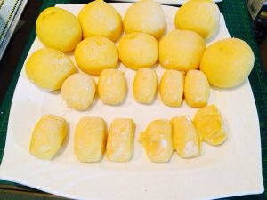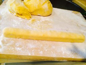 分成等份,做大一点儿或小一点都可以,擀成面皮。