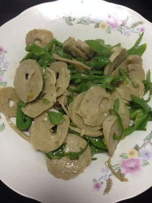 原谅我直接拍的成品:油热放入花椒、葱和干辣椒,反复炒出香味。放入辣椒、随后放入面筋。加盐,炒熟后入盘即可。很简单哦