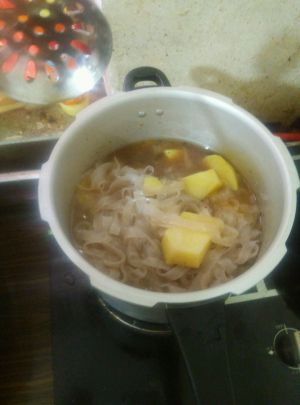 加土豆,粉皮,盐再压五分钟~美味既成